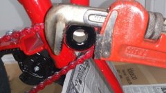 オマケに、ワンタッチでつけられる、と思っていたら、このステム固定金具がハンドルの折畳部と干渉してうまくつかない。