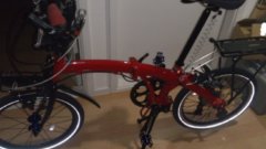 ちなみに、この形態でアヘッドステム(私のは重めのアジャスタブルのやつですが)を付けたハンドルを内側に折って、シートポストを外側から引っ掛ける様に内側にかけた場合、折りたたみ状態から、ある一定以上には車体が開く(車輪が離れる)ことがなくなるので、ちょっとした折りたたみ状態の固定にも利用できて、尚且つ、折りたたみ幅を縮小できるので玄関収納時などにも便利です。